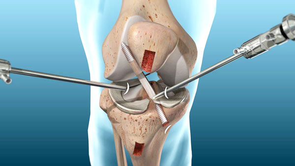 The arthroscope is a fibre-optic telescope that can be inserted into a joint (commonly the knee, shoulder and ankle) to evaluate and treat a number of conditions. A camera is attached to the arthroscope and the picture is visualized on a TV monitor. Most arthroscopic surgeries are performed as a Day- Care procedure and are usually done under general/regional anaesthesia. Knee arthroscopy is a common procedure.