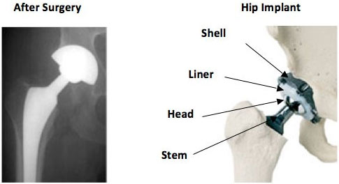 During the surgery, the bones in the hip are exposed by an incision made on the side of the hip. The damaged sections of bone are removed to make room for the replacement components. The thighbone receives a metal alloy stem and ball, and the pelvis receives a metal cup and liner. The implants are designed to create a new smoothly functioning joint that prevents painful bone-on-bone contact. There are several materials that can be used to line the socket in your pelvis including highly cross linked polyethylene (plastic) or ceramic to act as healthy cartilage. We will evaluate your specific condition and discuss which option will provide the most favorable results for you.